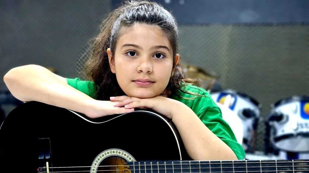 150 crianças, adolescentes, jovens e adultos com aulas de Músicalização, Teoria, Canto, Violão, Bateria, Flauta Doce e Instrumentos de Sopro.